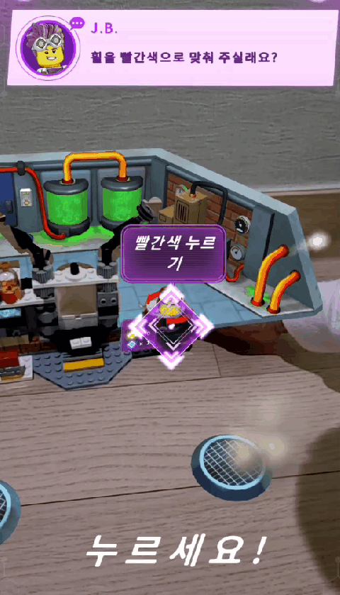 레고 70418 세트도 AR 게임 시 저 색깔 블럭 판을 인식해줘야 한다. 둥근 모양의 특수 블럭이 없어 2x1 사각블럭으로 꼽아줬지만 제 기능은 잘 발휘하더라.