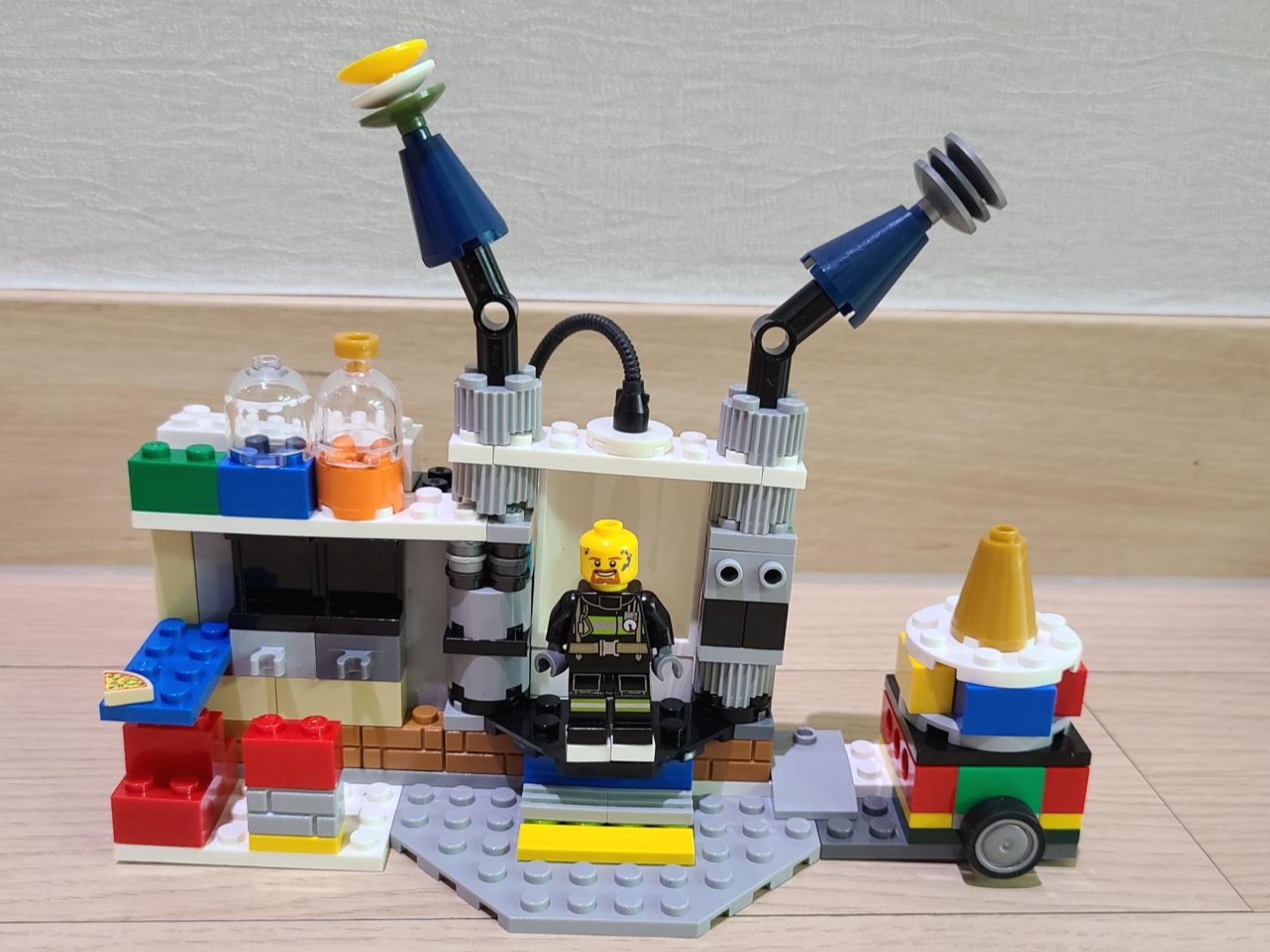 집에 있는 레고 부품들로 레고 70418 세트를 조립한 모습.