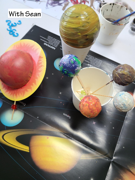 종이컵에 하나씩 꽂다보니 마치 행성이 알사탕같아 보이기도 한다.