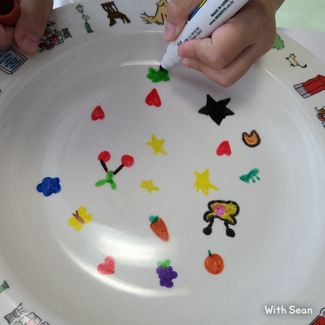 아이들에게 우선 그릇에 그림을 같이 그려보자고 했다.
