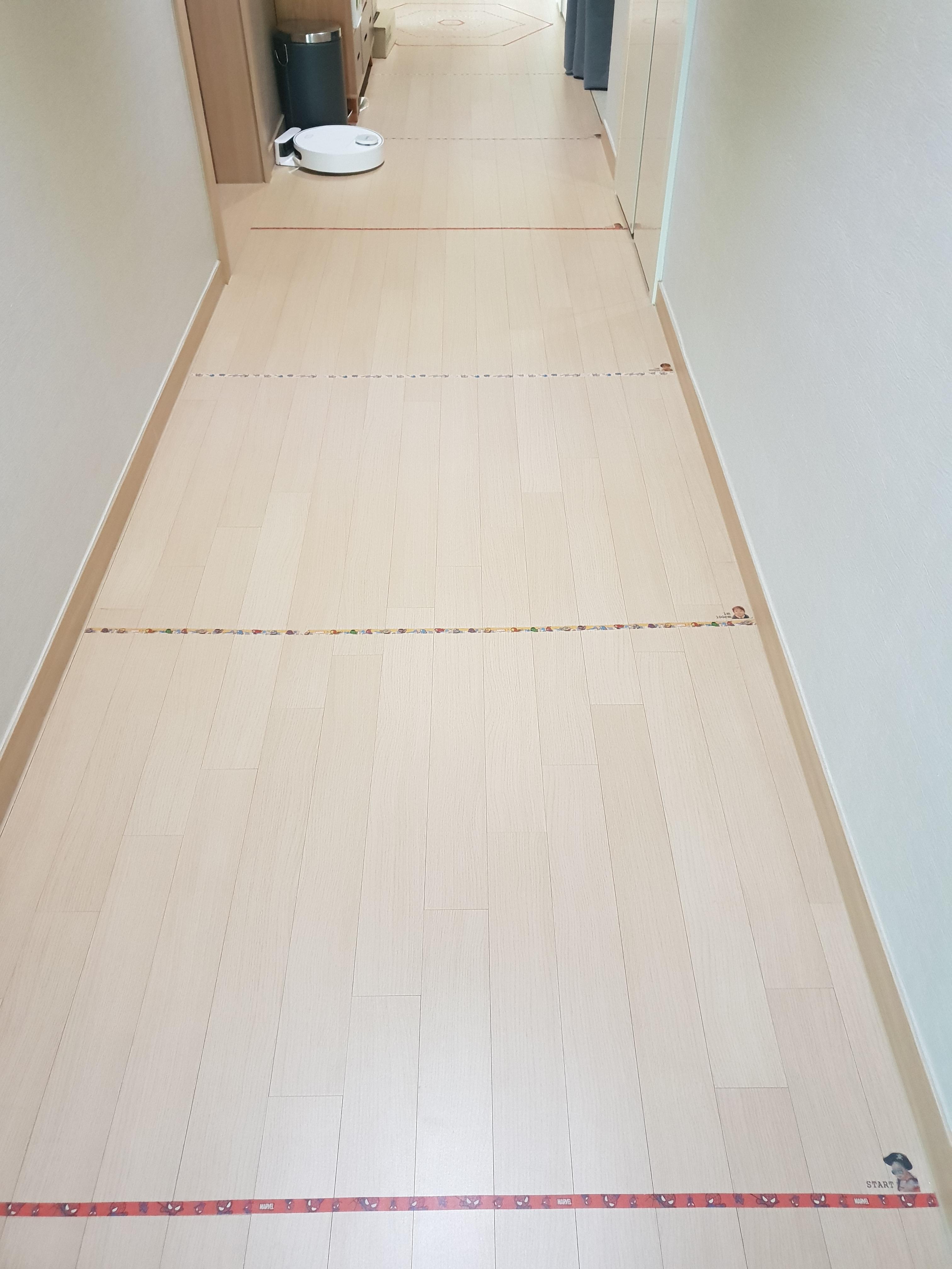 종이 재질의 마스킹테이프를 이용해 1미터 간격으로 표시를 했어요.