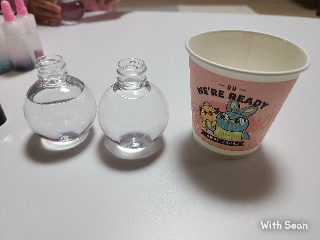 (글리터를 넣어야하니 절대 처음에 물을 꽉 채우지 않아요.)