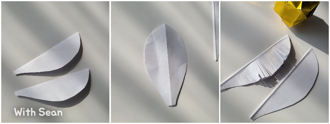위 그림과 같이 철사부분까지 가위집을 내어 주면 날개는 완성이예요.