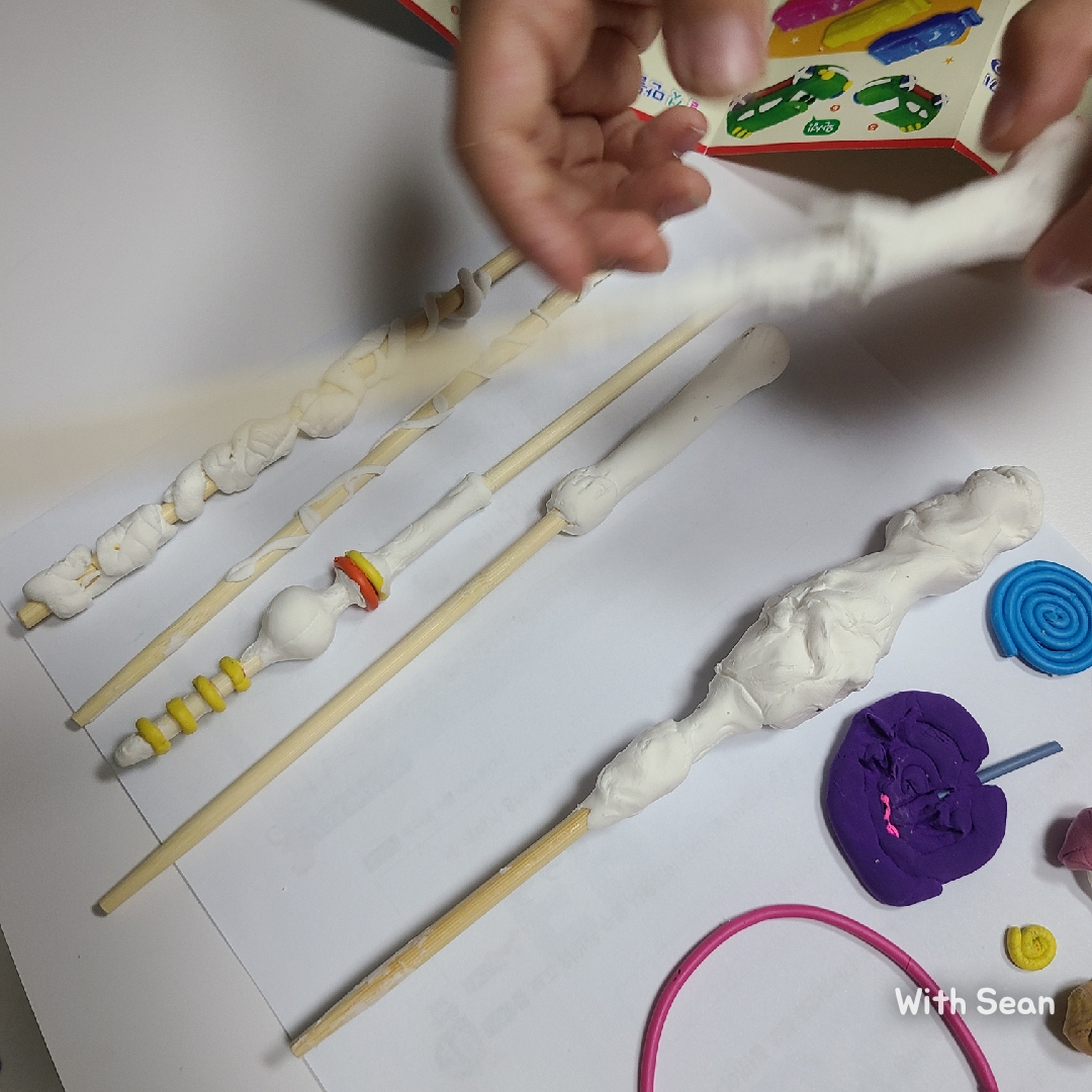 집에 해리포터 지팡이컬렉션 책이 있어서 책을 보며 만들었어요.