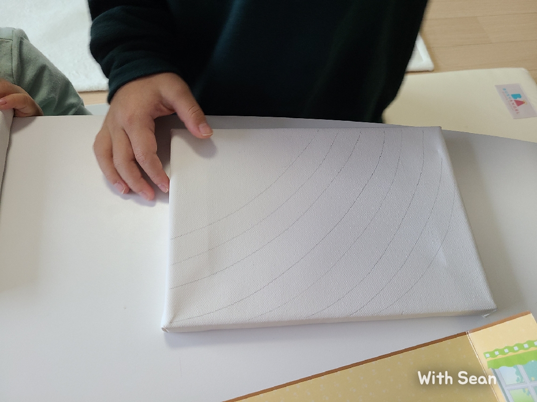 무지개를 좋아하는 8살 셔니는 무지개 간격만 쓱쓱 연필로 표시해줬어요.