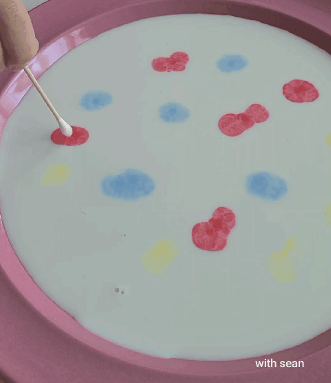 아이와 손쉽게 할 수 있는 '춤추는 우유' 실험을 추천합니다.