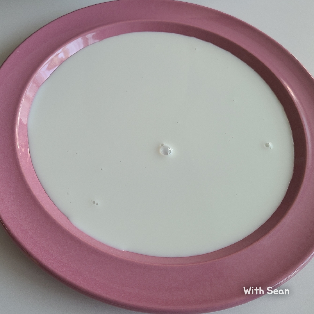 1. 넓은 접시에 우유를 퍼지도록 부어주세요.