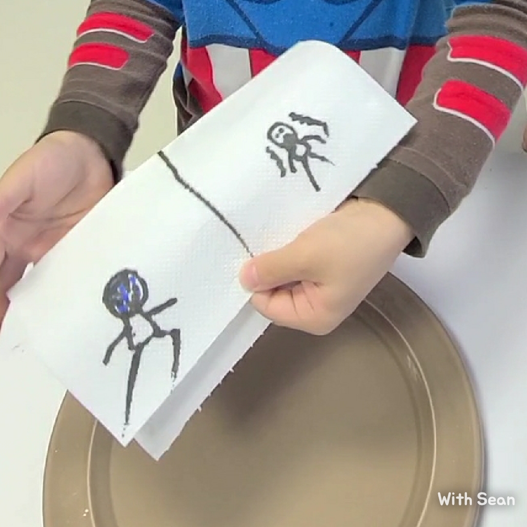 2. 접은 앞면에 유성매직을 사용하여 밑그림을 그려주세요.