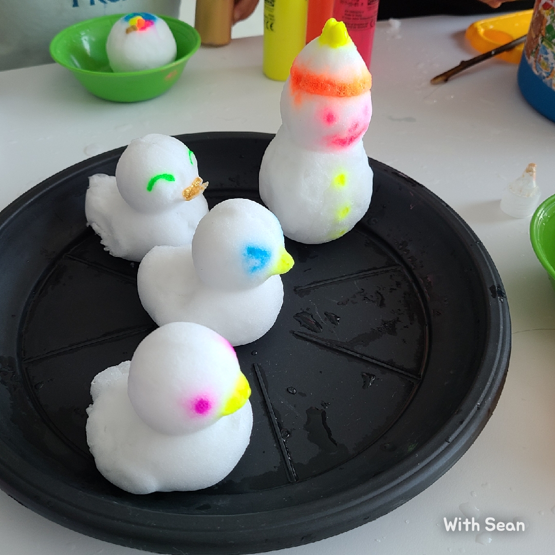 눈사람도 만든 후 물감으로 옷을 입혀줬어요.