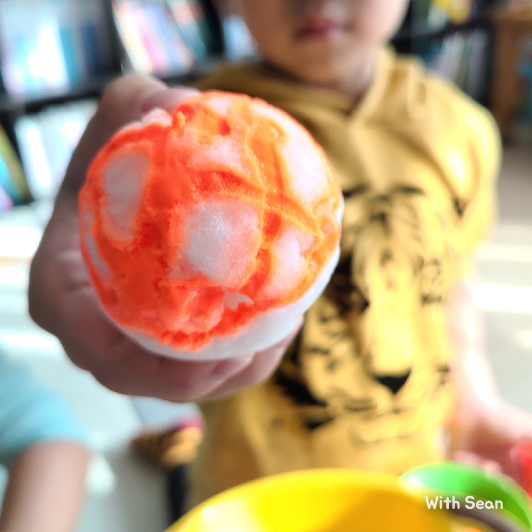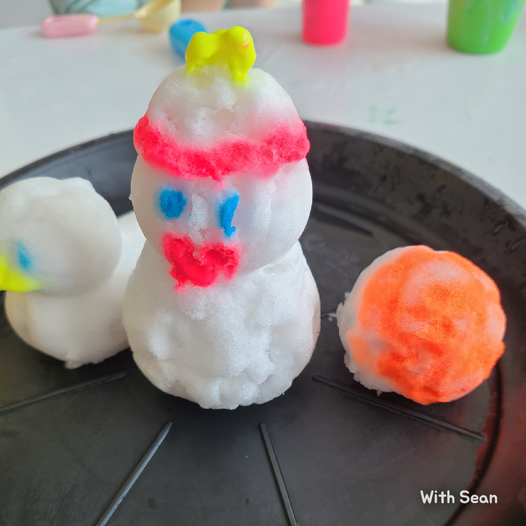 눈사람도 만든 후 물감으로 옷을 입혀줬어요.