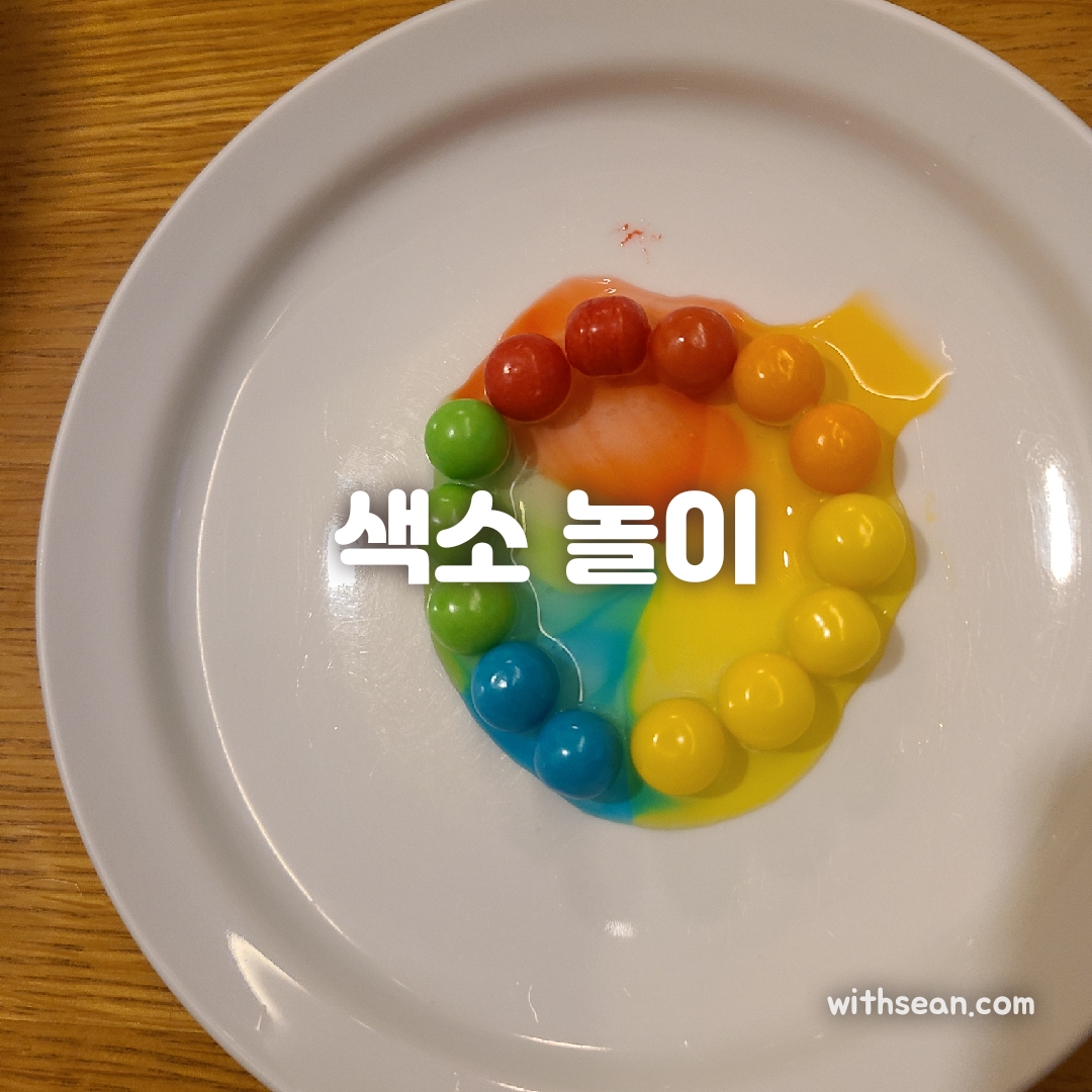 한창 색깔을 녹이며 놀다가 아직도 남은 과자는