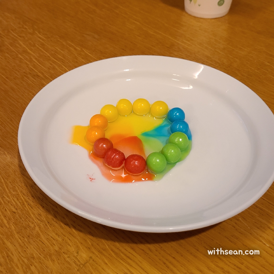 겉에 코팅되어 있던 색소가 녹아나오는 것을 볼 수 있어요.