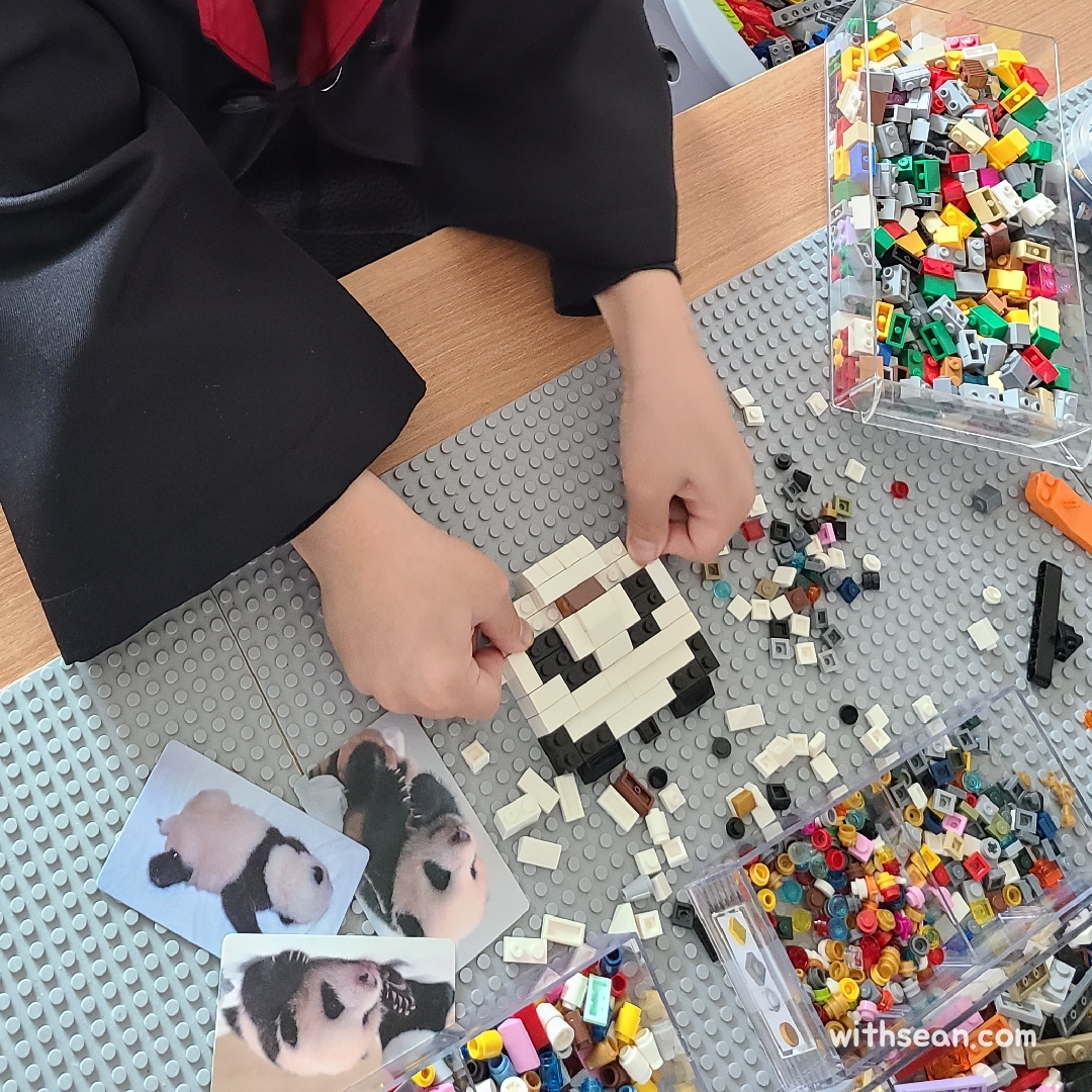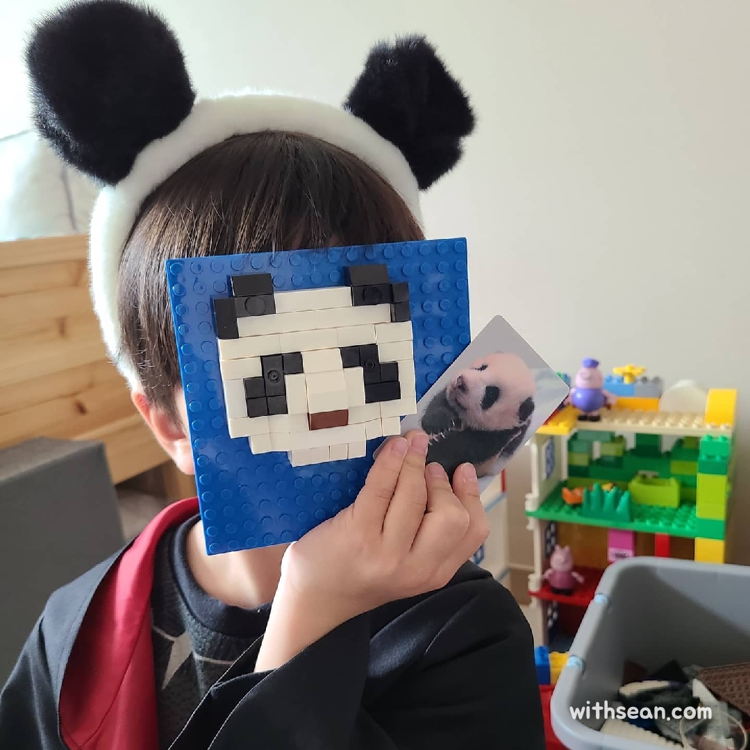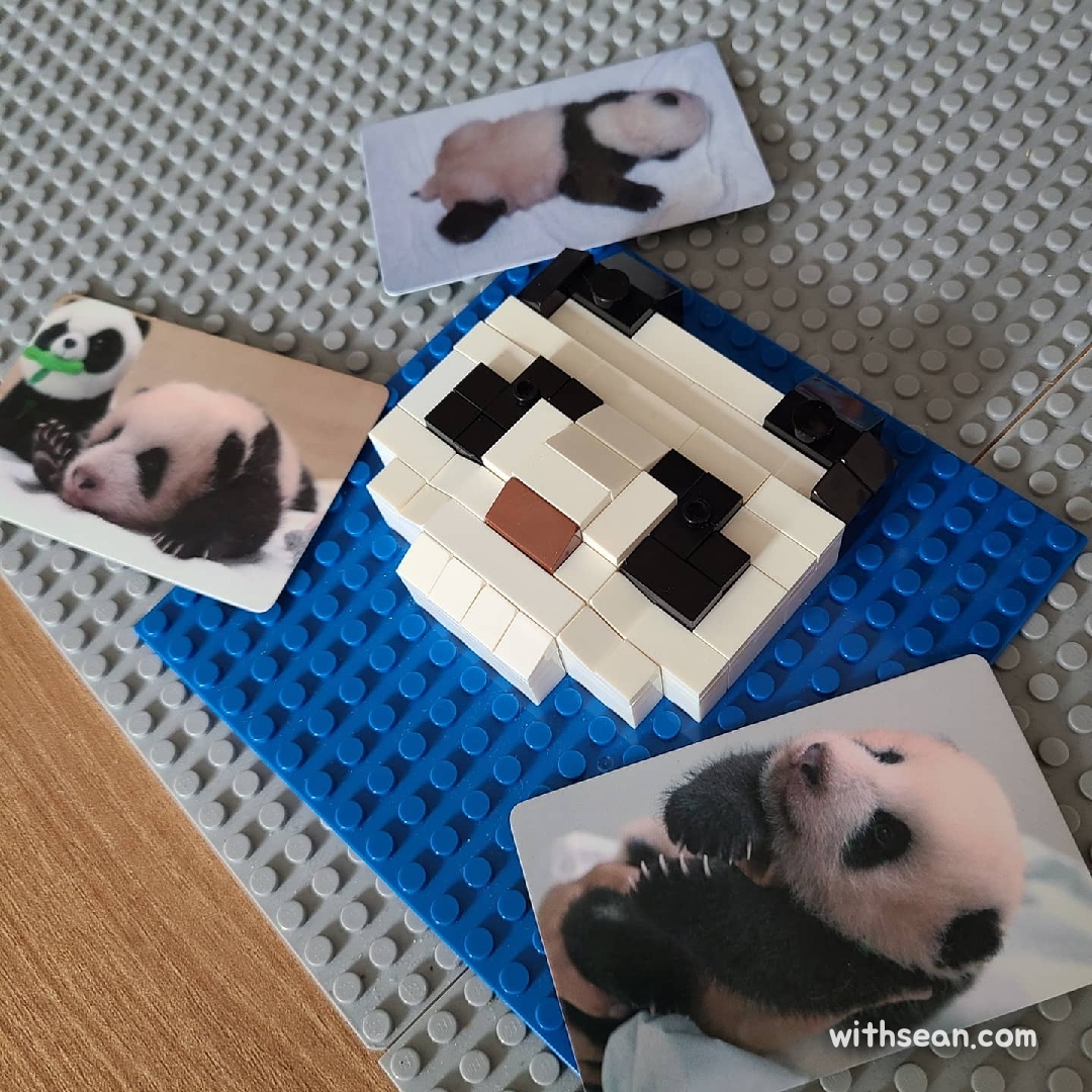 팬더 머리띠까지 쓰고 진심을 다해 만든 푸바오 레고예요 :)