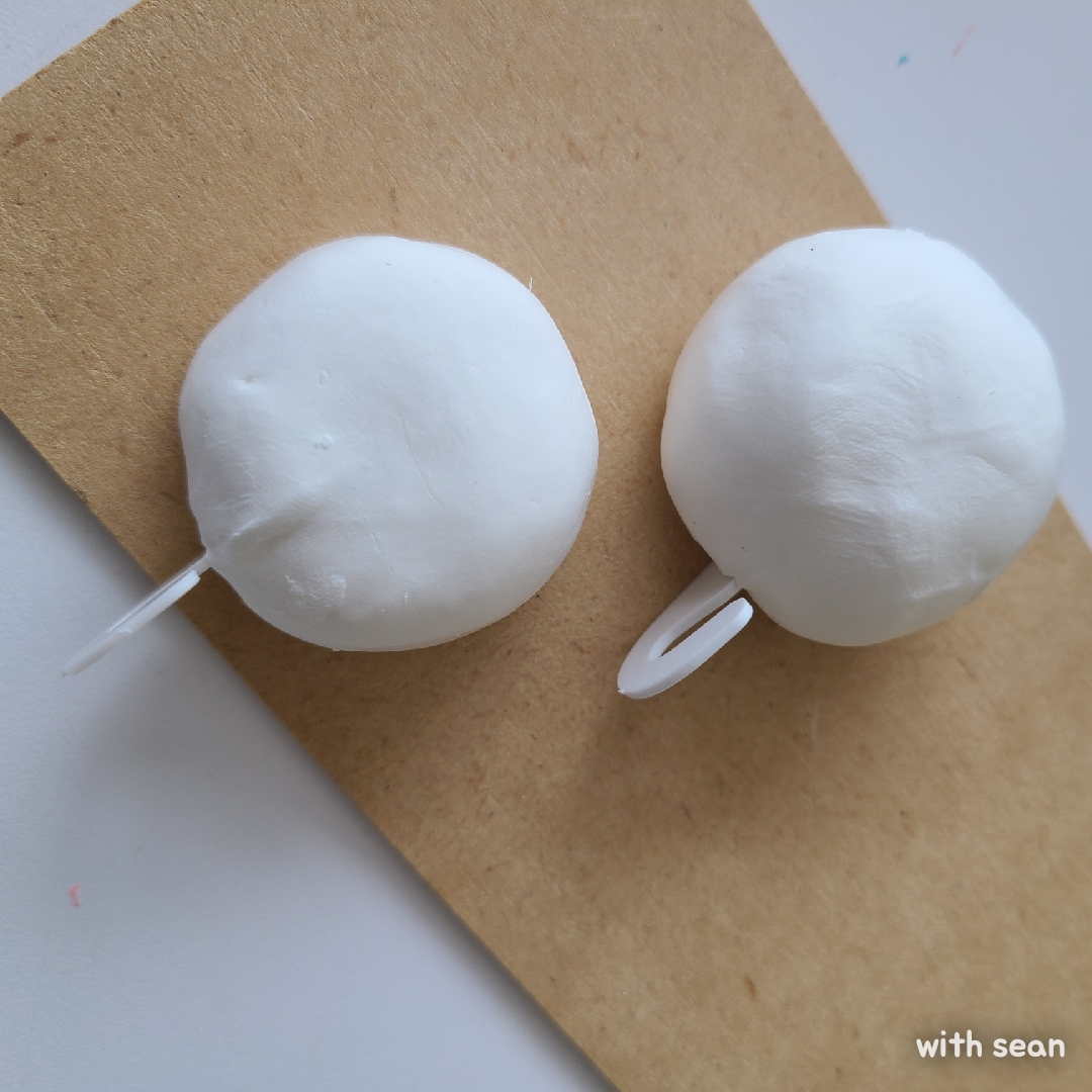 둥글둥글. 하얀색 클레이를 굴려서 마스크 후크의 벌어진 부분이 밖으로 나오게해서 쏙 클레이 안에 넣어주었어요.