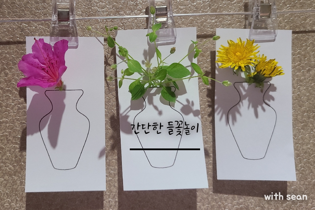 하원길마다 꽃만 보면 이쁘다며 꽃앞에서 쉬 떨어지려 하지 않는 5살 슈리와 함께 들꽃으로 간단한 놀이를 했어요.