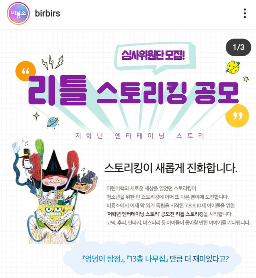 여기에 추가로, 초등 2~3학년 학생들이 지원 가능한 '리틀 스토리킹 심사위원' 모집을 하더라구요.