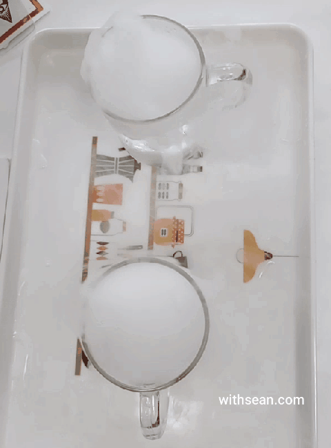 1. 컵에 드라이아이스를 담고, 물을 담아주세요.