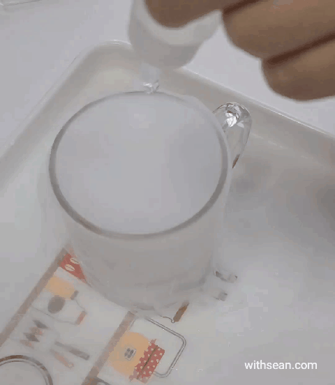 컵 안에 손을 넣지 않기로 약속했어요.