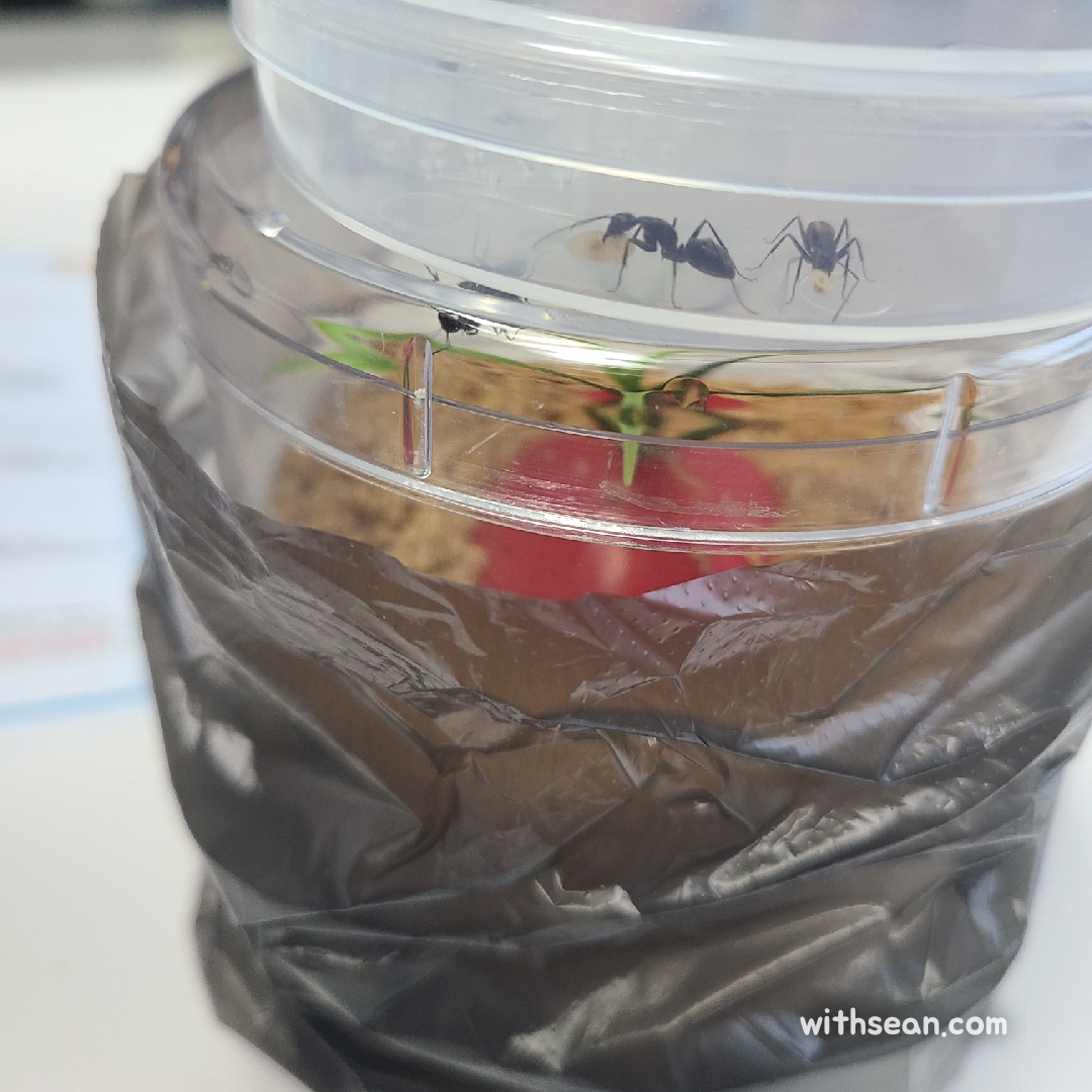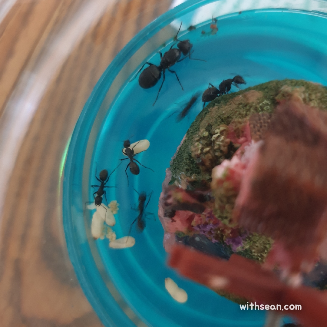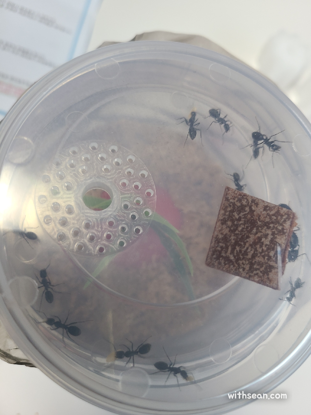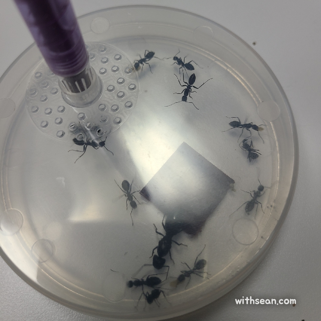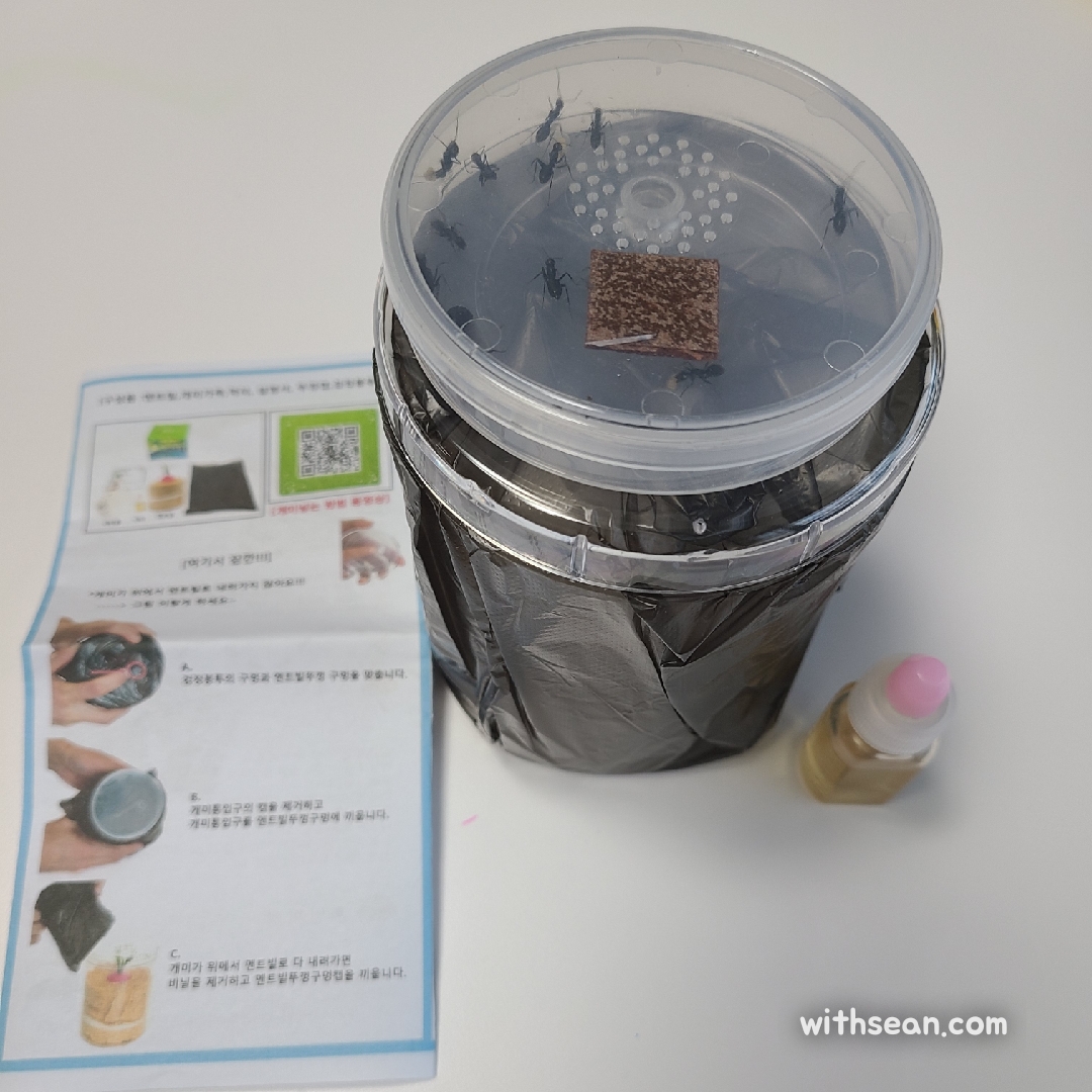 다시 한다면, 흙통에 먹이를 한 방울 떨어뜨린 후에 개미통을 연결할 것 같아요. 배송되며 며칠 굶어서 그런지 먹이에 대한 반응이 좋더라구요.