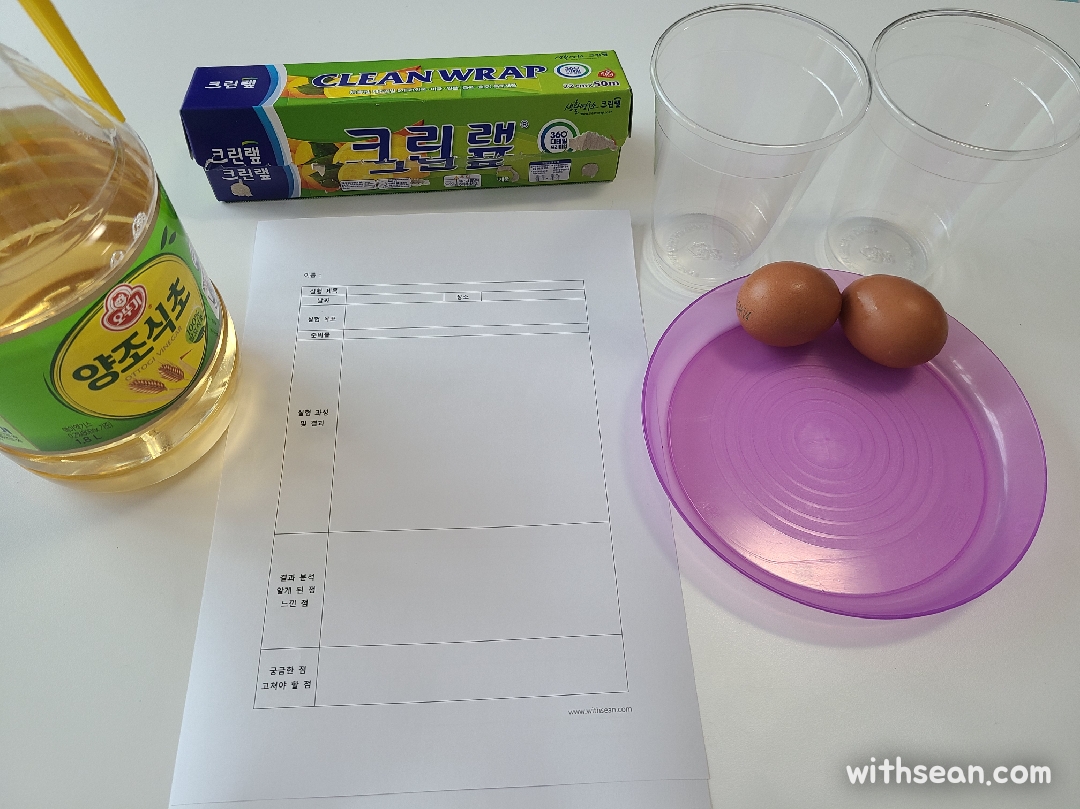 준비물 : 달걀, 식초, 컵, 랩 (컵 뚜껑용)