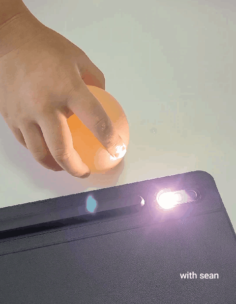 태블릿 불빛 위에 달걀을 올려도 봅니다.