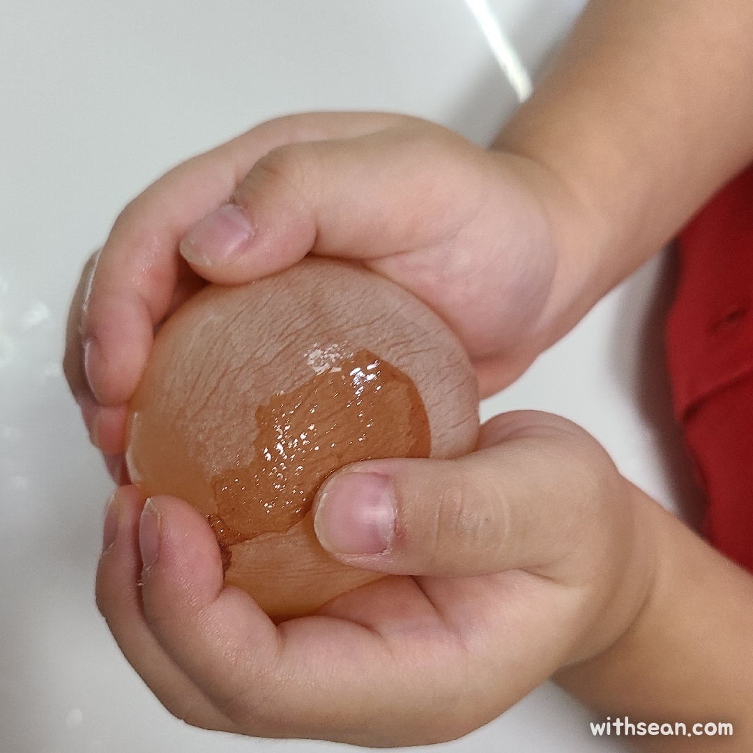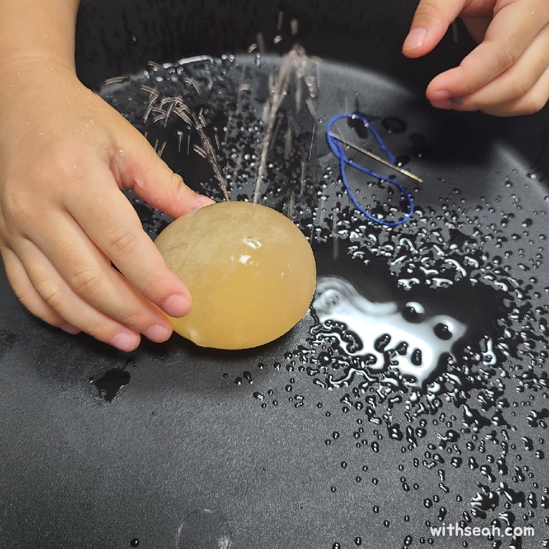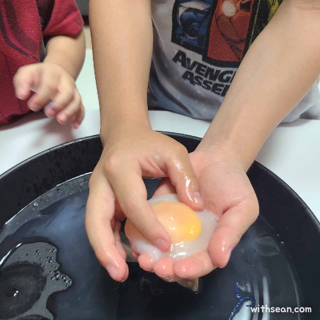 나중에는 막을 찢으면서 놀았는데, 안에서 계란 후라이 같은 모습으로 나와서 재밌었어요.