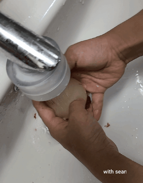 달걀을 꺼내서 물에 살살 씻어줍니다.