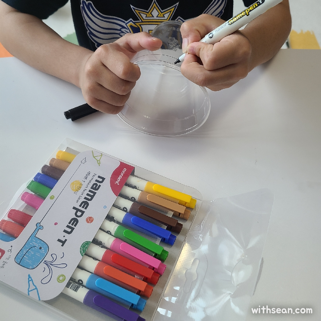 실험을 시작하면서 네임펜으로 컵을 꾸며줬어요.