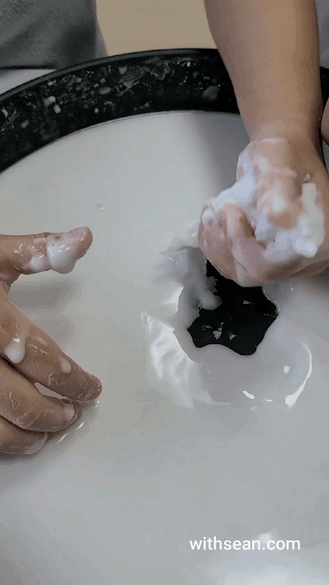 한창 유행하는 슬라임의 성질처럼 쫀득하면서, 뭉치면 뭉쳐졌다가 다시 액체로 풀어졌다가 하는 모습이 정말 신기하죠?