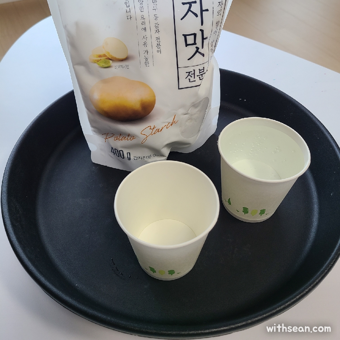 전분과 물의 비율이 2:1 이 되도록 섞어주세요.