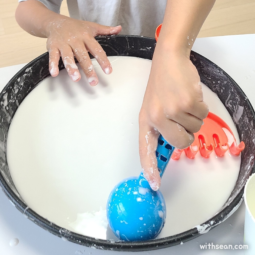 간단한 재료인데 아이들이 슬라임 놀이할 때 보다도 더 오랫동안 놀았어요.