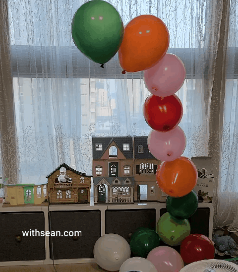 가정에 있는 송풍기 세기에 따라 바람의 각도와 풍선 갯수 등의 조절이 필요할 것 같아요.
