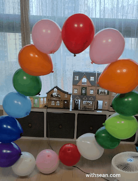 가정에 있는 송풍기 세기에 따라 바람의 각도와 풍선 갯수 등의 조절이 필요할 것 같아요.