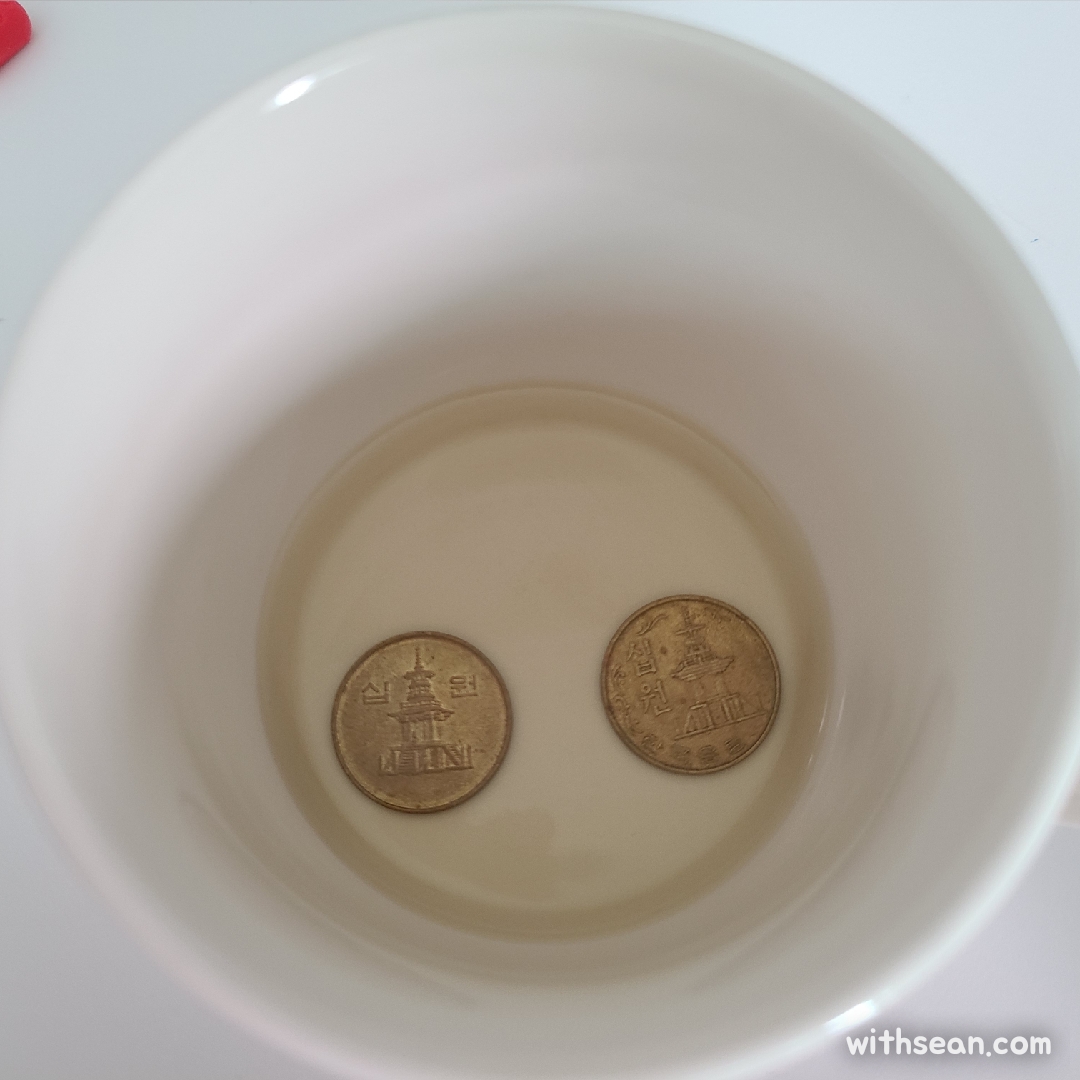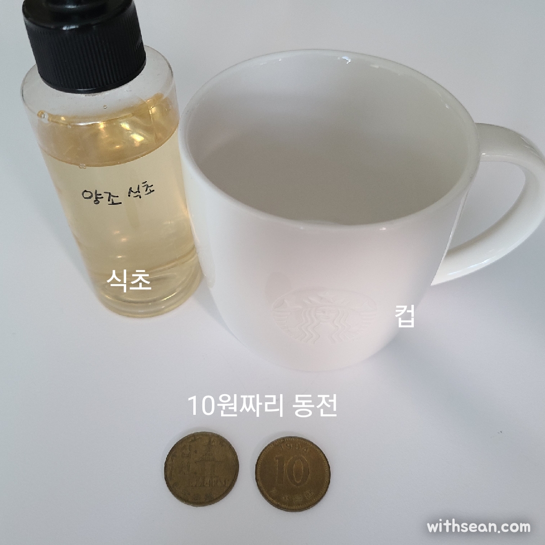 식초로 10원짜리 동전의 원래 색을 찾아볼까요?