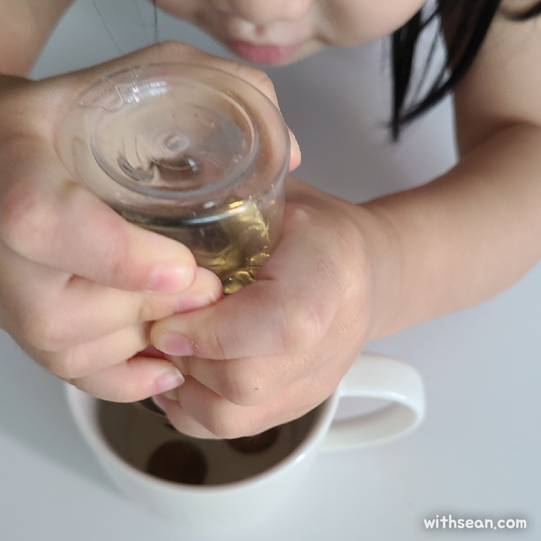 컵에 동전을 넣고, 동전이 잠길 정도로 식초를 짜줍니다.
