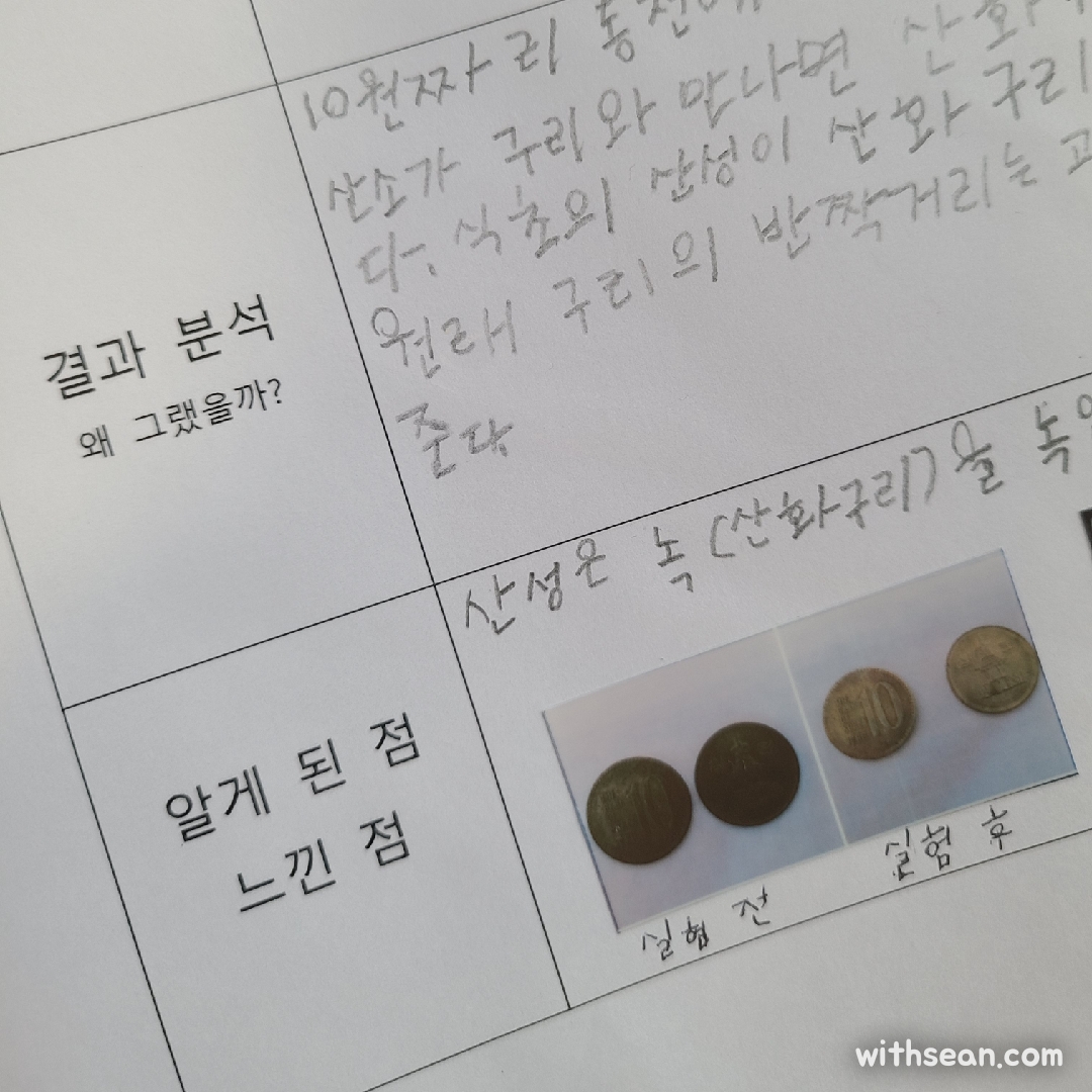 셔니의 과학실험보고서 : 반짝반짝 동전 - 산의 성질