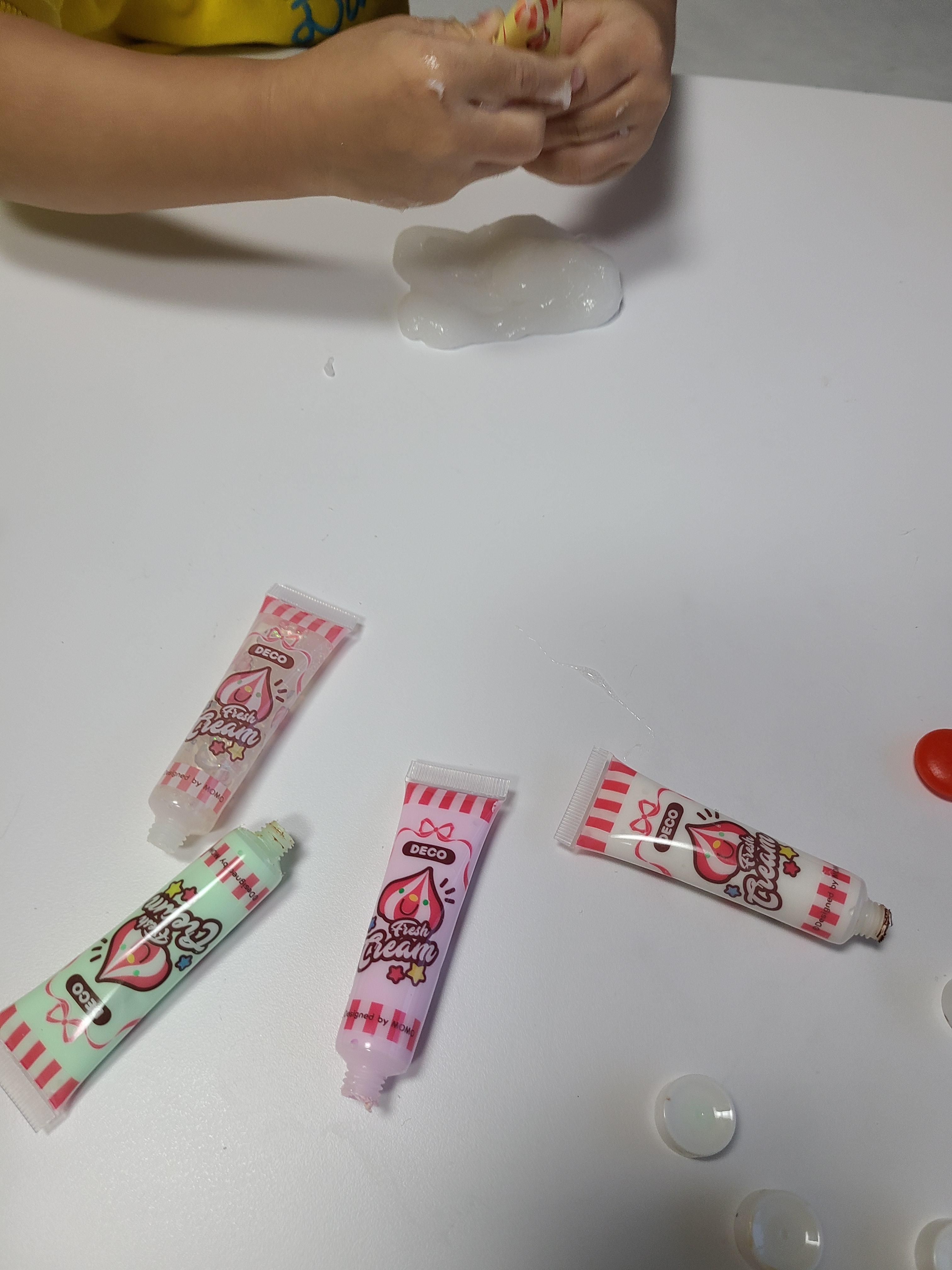 전에 필통만들기 하고 남았던 데코덴 생크림 풀이 있어서 함께 섞어줬어요.