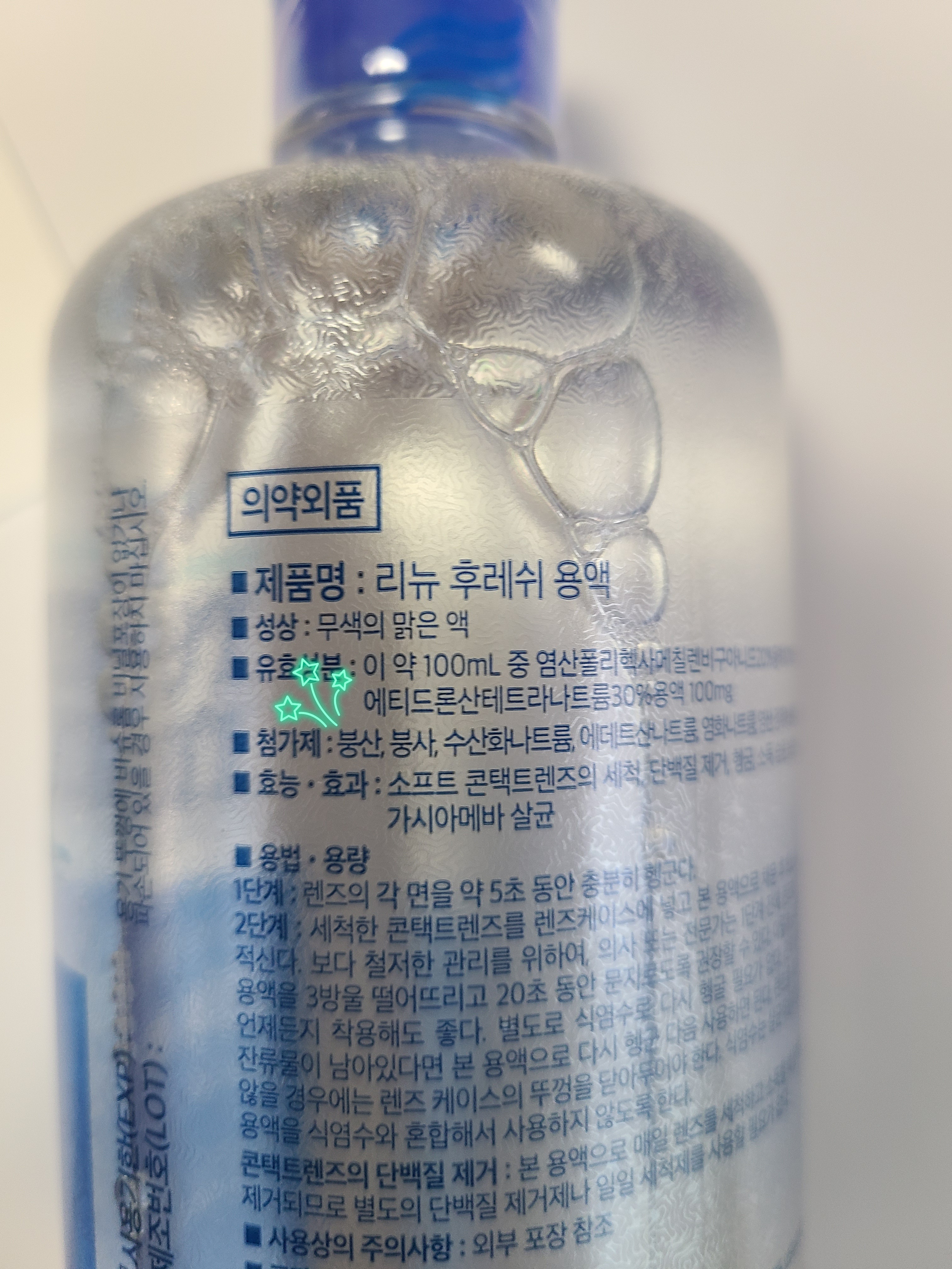 다른 렌즈 세정액을 사용하더라도 꼭 붕산(붕사)가 포함된 것으로 사용하셔야 해요. (왜 그런지는 아래 과학설명에서)